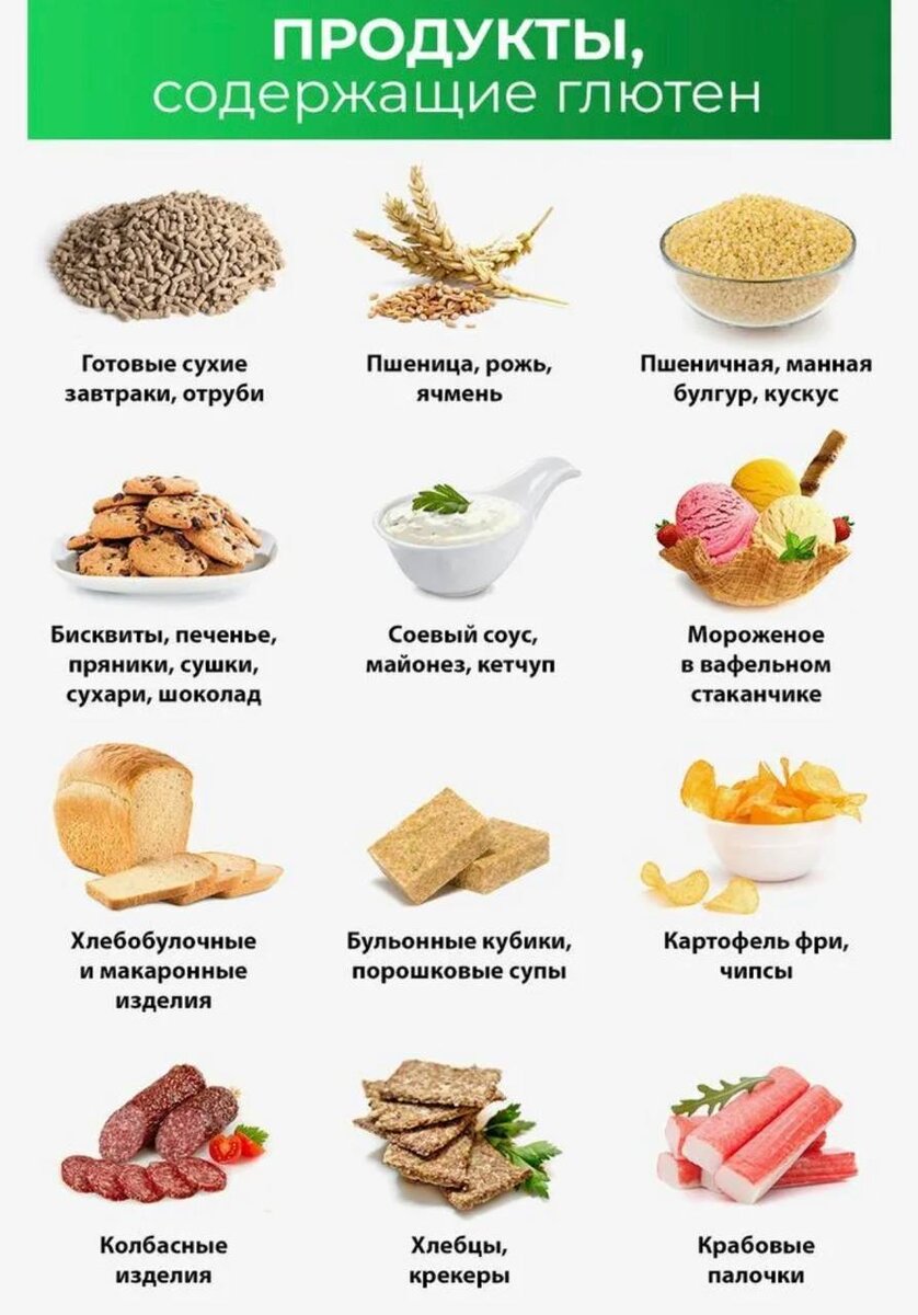 Также важно знать, что глютен содержится в многих продуктах, таких как хлеб, пиво, некоторые виды колбасы и других готовых продуктов. therefore, it is important to read labels carefully and choose products that are gluten-free.