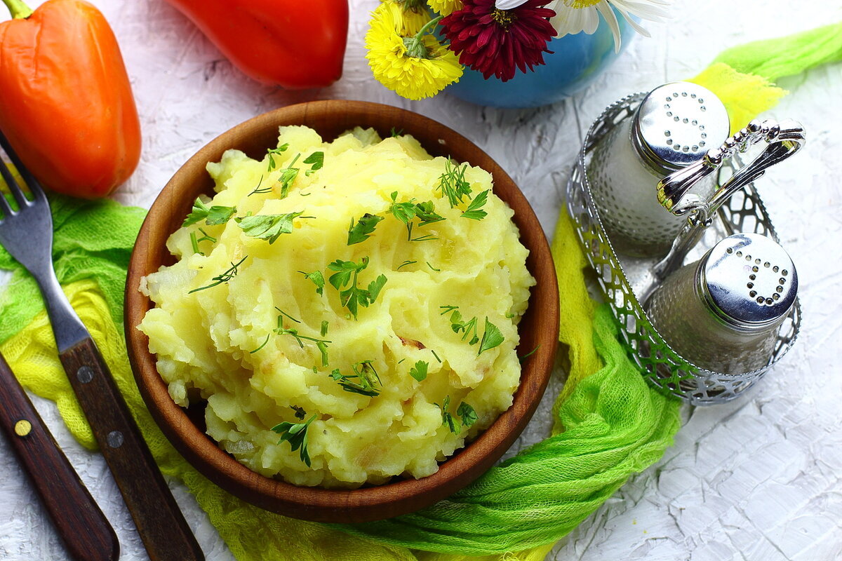 - Картофельное пюре с зеленью: тертый картофель, зелень, соль, масло.