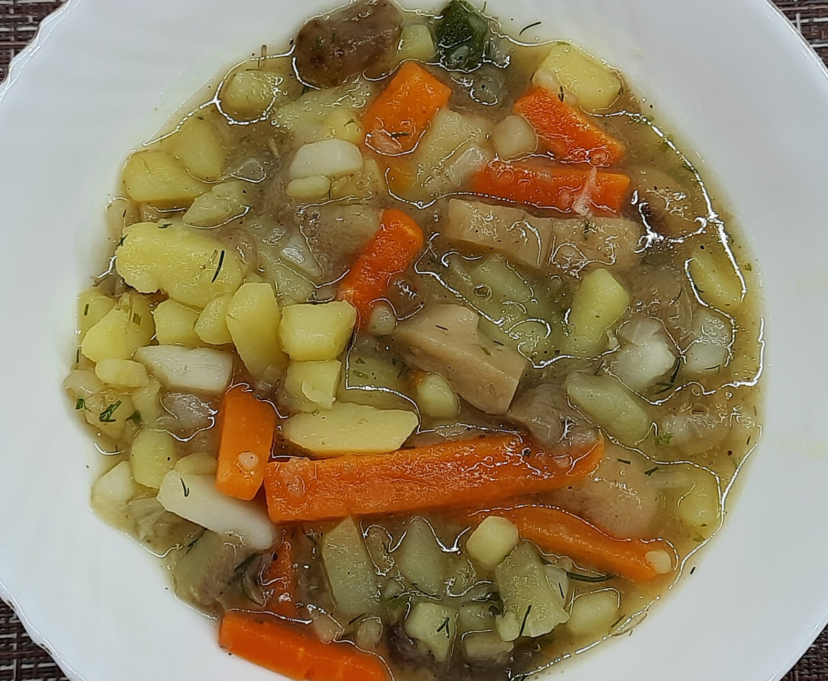 Пример рецепта: тушеная картошка с мясом и грибами. Нужно подготовить 1 кг картофеля, 100 г мяса (например, свинины), 50 г грибов, 2 луковицы, 1 морковь, соль и специи по вкусу. Картофель нарезать на кусочки, мясо нарезать на маленькие кубики, грибы нарезать на мелкие кусочки. Варить картофель в воде до полуготовности, затем смешать его с мяском, грибами, луком и морковью. Тушить все это на медленном огне до готовности. Подавать тушеную картошку с мясом и грибами горячей или холодной, по вкусу.