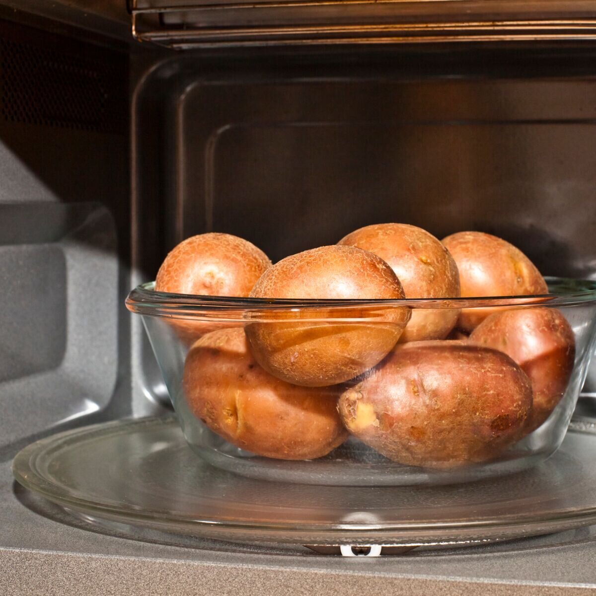 - Используйте высокую мощность микроволновки для быстрого приготовления картофеля.