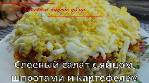 - Слоеный салат с яичным желтком, шпротами и картофелем: отварите картофель, нарезайте его кубиками. Затем смешайте картофель с измельченными яичными желтками, шпротами, мелко нарезанным репчатым луком и солью.
