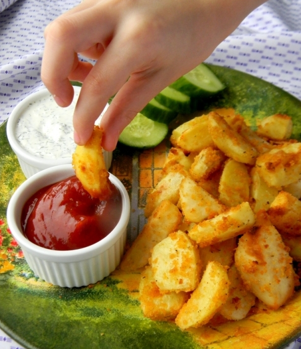 Вот рецепт хрустящего картофеля по-деревенски с чесночным вкусом: