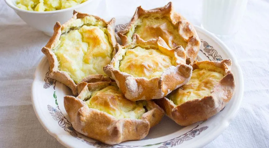 Один из самых простых рецептов - это картофельные рогалики с начинкой из тушеной квашеной капусты и яйцом. Вторым по популярности является рецепт жареных картофельных пирожков с грибами и зелёным луком.