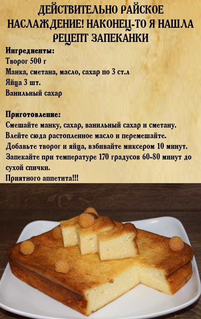 Творожная запеканка также является популярным вариантом, который готовится из смеси творога с яйцами и специями, и запекается в духовке при температуре 160 градусов в течение 20-25 минут.