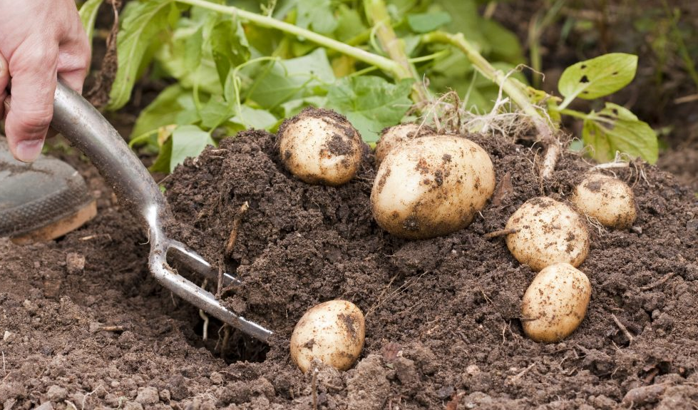 Когда картофель будет готов к сбору, его необходимо аккуратно выкапывать из земли. Необходимо осторожно обходить корни, чтобы не повредить их, и не оставлять никаких частей в земле.