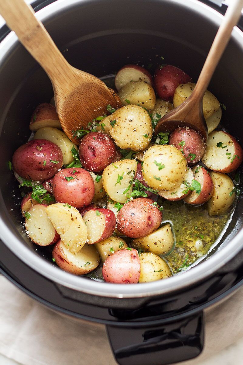 Для начала необходимо очистить картофель от кожуры и нарезать его дольками. Затем нужно положить картофель в мультиварку, добавить масло, соль, грибы и чеснок. Закрыть крышку и готовить на программе «пирог» или «суп» 45 минут.