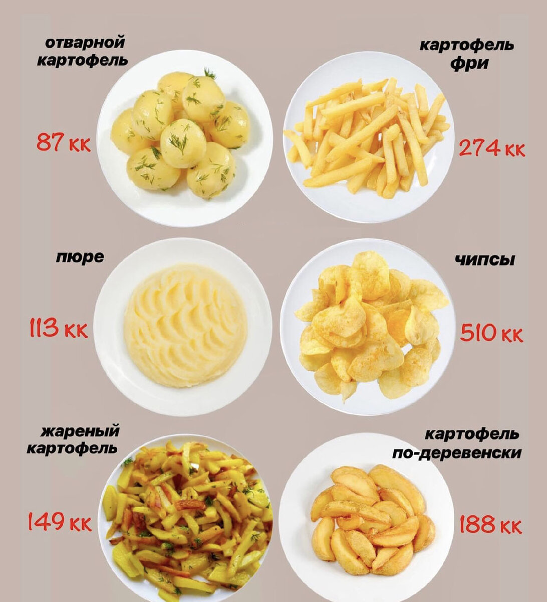 Картофель может быть приготовлен в различных формах, таких как вареный, запеченный или жареный. Каждая из этих форм влияет на количество калорий, содержащихся в картофеле.