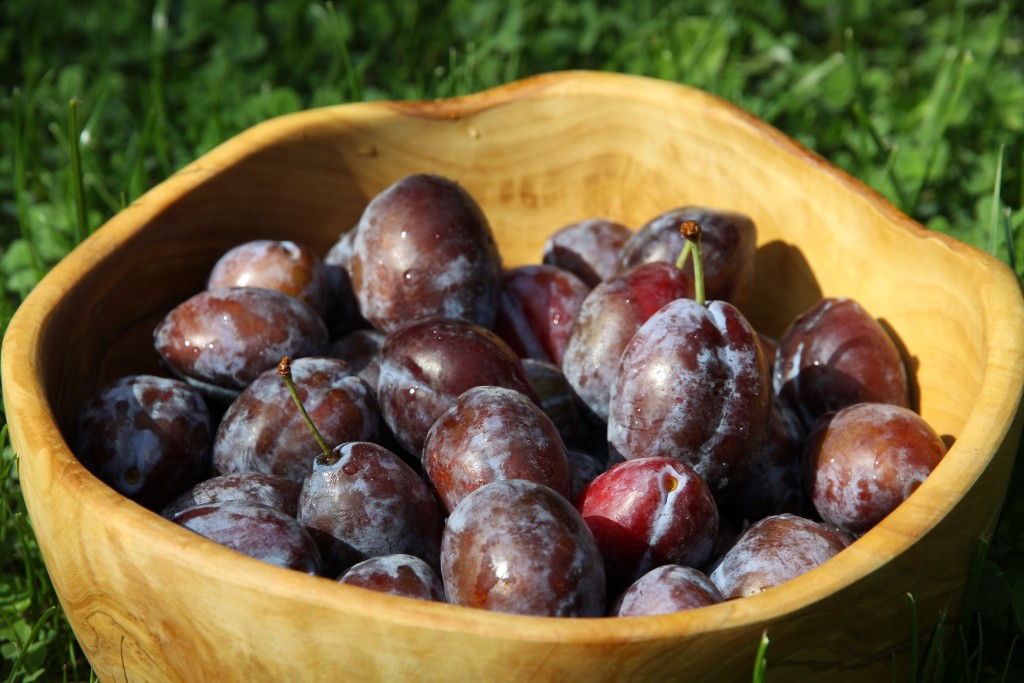 Картофель с маринованными сливами: молодой картофель, очищенный и нарезанный кубиками, тушится в духовке с маринованными сливами, солью и сахаром. Затем он подается с жареным беконом и свежей зеленью.