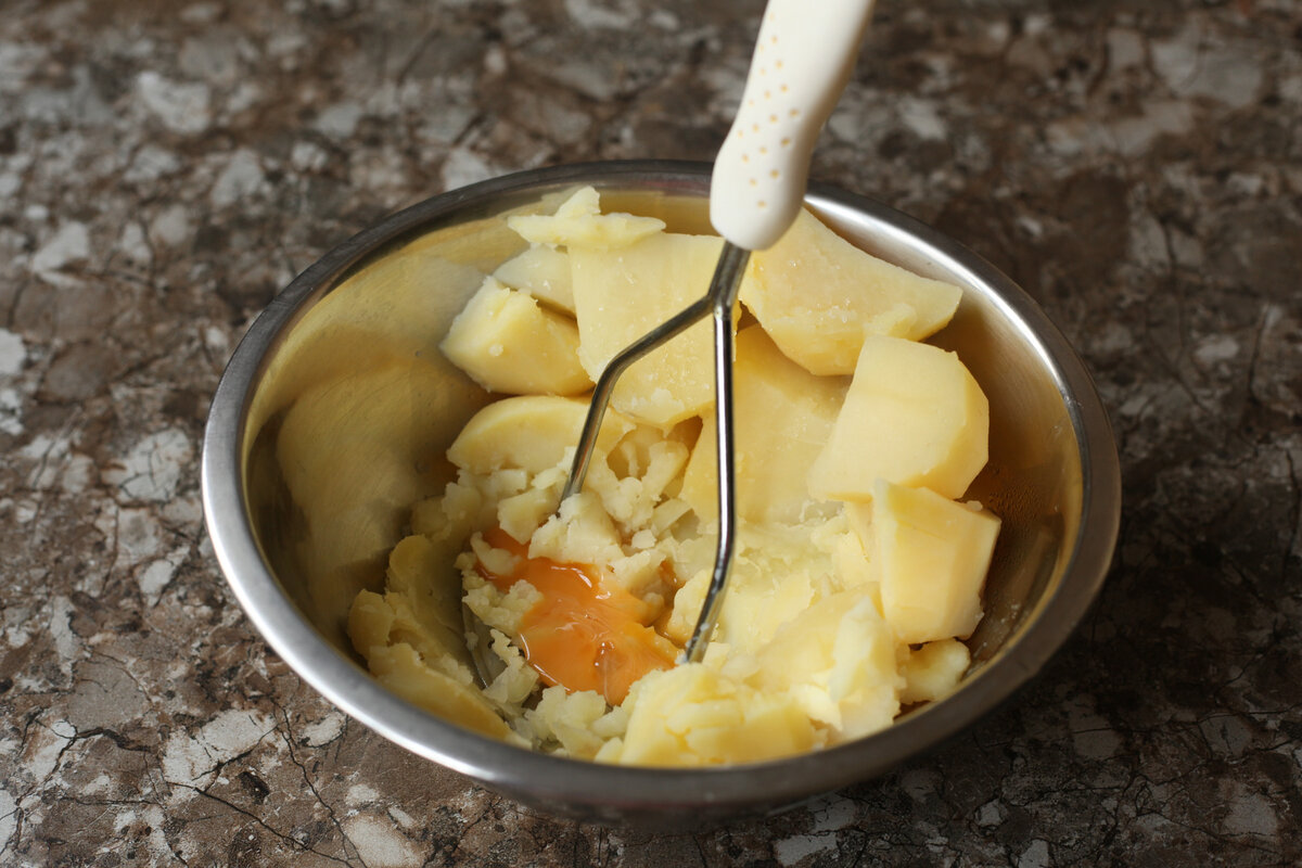 Варите картофельное пюре до тех пор, пока оно не станет густым и кремовым. Затем слейте смесь в отдельную посуду и оставьте ее остывать.