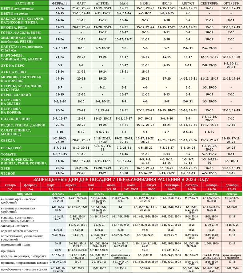 Обратите внимание на таблицу ниже, чтобы выбрать оптимальные даты для посадки своих растений.
