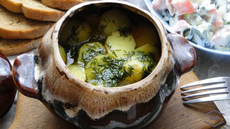Вот рецепт, который будет вам полезен: ингредиенты – 2 кг картофеля, 1 столовая ложка масла, 1 столовая ложка соли, 1 столовая ложка сахара, 1 чайная ложка уксусной кислоты, 1 чайная ложка воды, специи и приправы по вкусу.