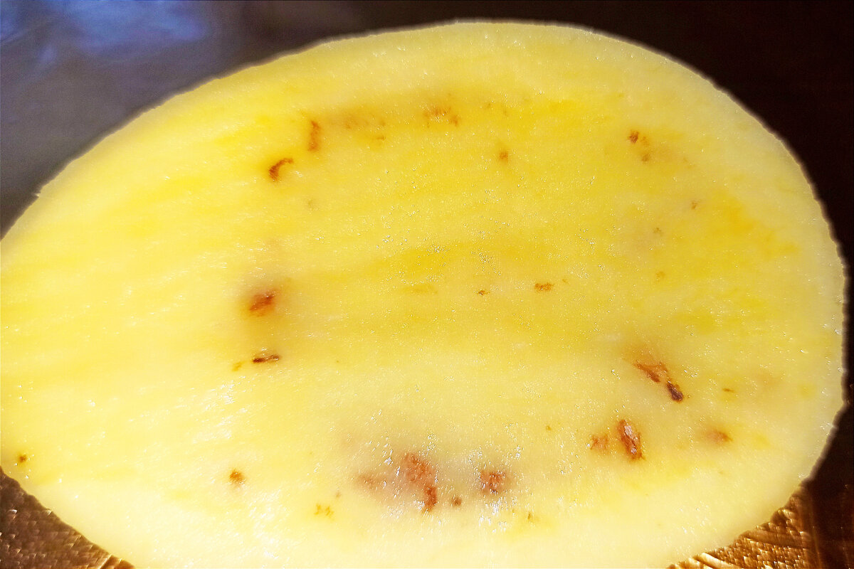 - Если вы обнаружили коричневые вкрапления внутри клубня картофеля, это может быть железистая или ржавая пятнистость. В этом случае, рекомендуется выбрать другой картофель.