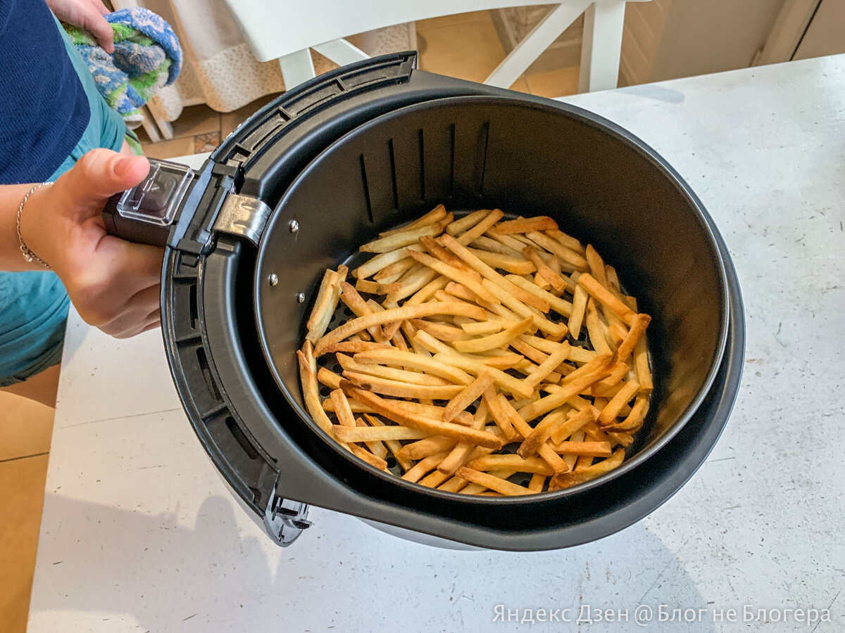 Теперь пришло время для аэрогриля. Этот прибор позволяет нагреть воздух до очень высокой температуры, что позволяет готовить картофель фри более быстро и равномерно, чем традиционные методы.