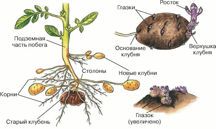 Клубень картофеля является побегом растения, которое растет из земли. Он имеет сложное строение, которое включает в себя несколько слоев ткани. Картофель также может быть использован для приготовления различных блюд, таких как чипсы, супы и салаты.