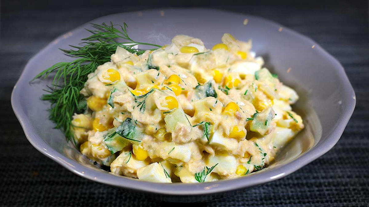 Салат с курицей, кукурузой, яйцами и сыром - это идеальный выбор для тех, кто любит мясо и овощи. Курица готовится на гриле, а затем добавляется кукуруза, яйца и сыр.