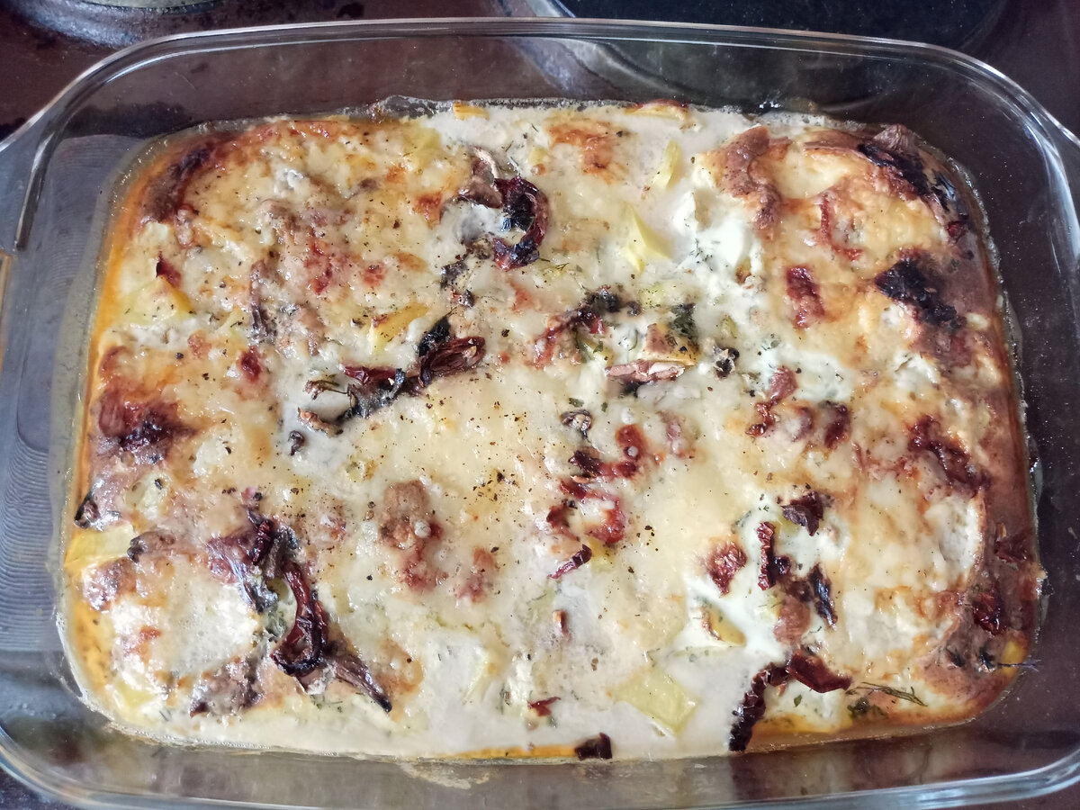 Запеченная картошка с куриным филе в духовке - рецепт на скору.
