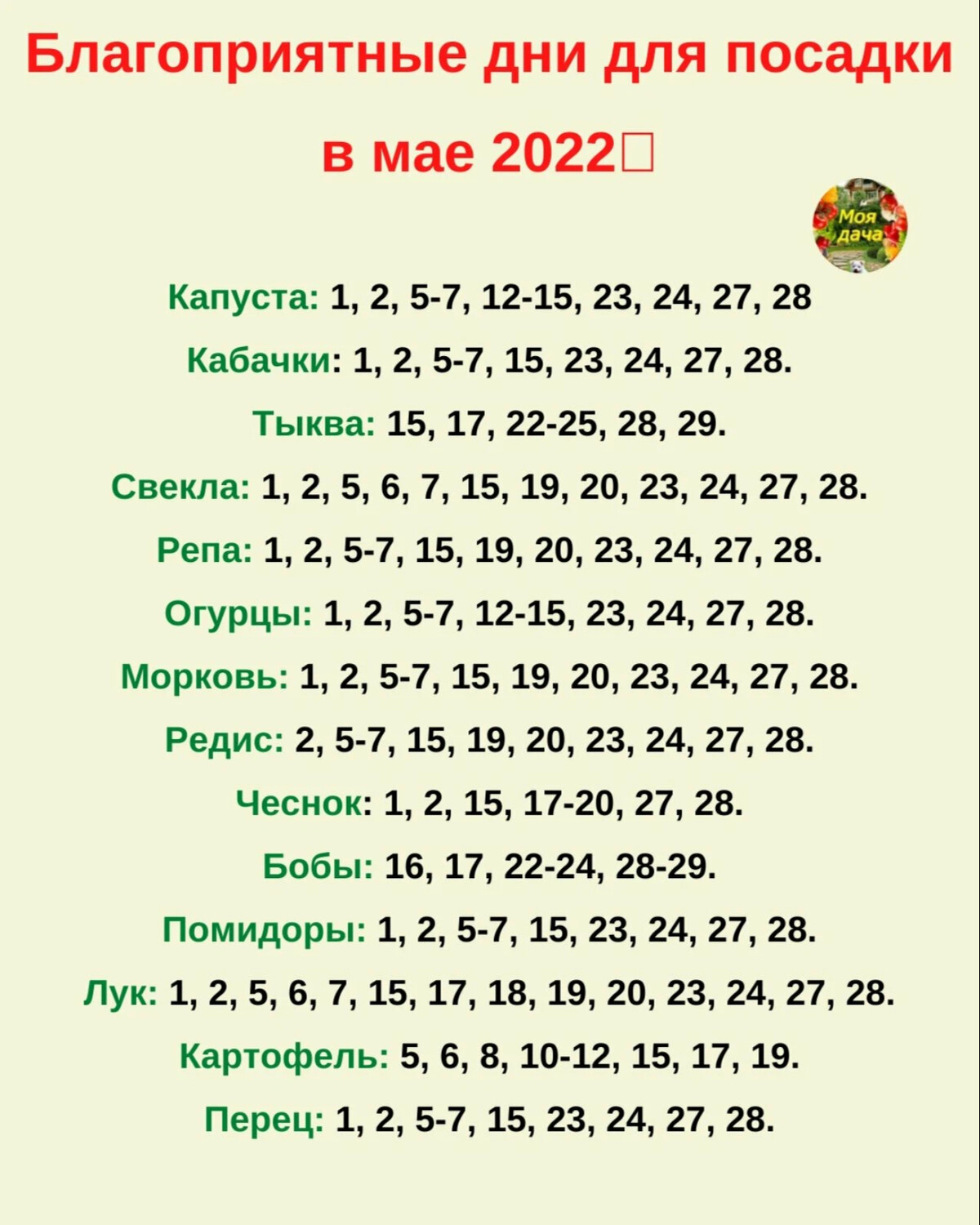 БЛАГОПРИЯТНЫЕ ПОСАДОЧНЫЕ ДНИ В МАЕ!