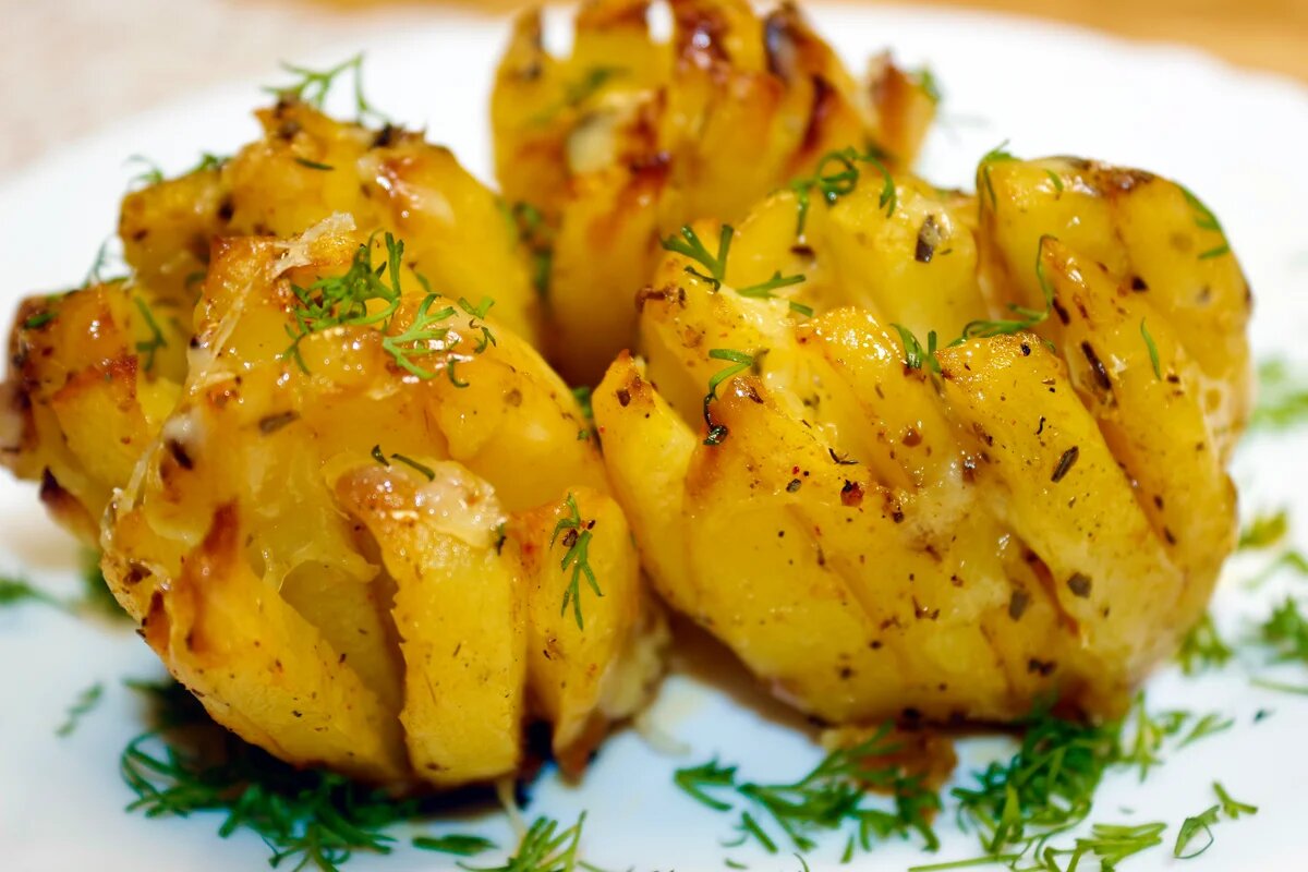 - Картофельные дольки по-деревенски в духовке - обжарьте картошку на сковороде с маслом, а затем запеките в духовке с добавлением чеснока и укропа.