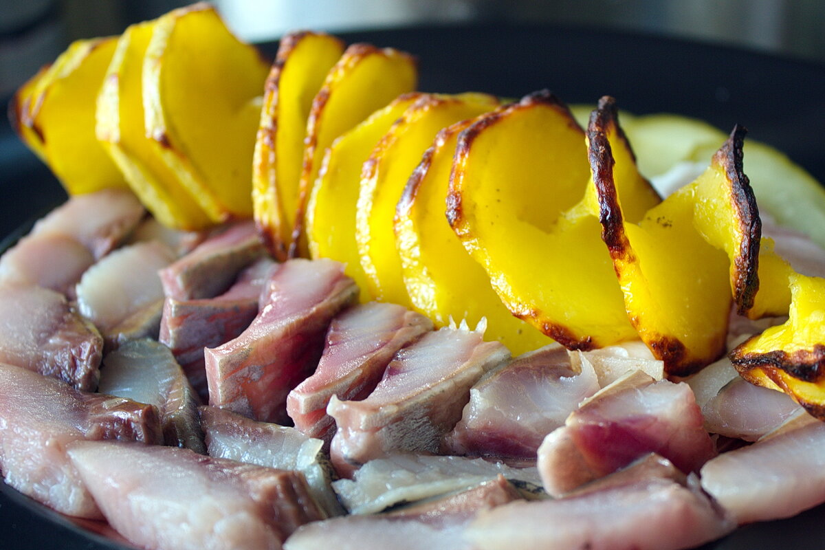 - Картофельные спиральки с колбасой: нарезать картофель спиралью, обжарить на сковороде и подавать с колбасой.
