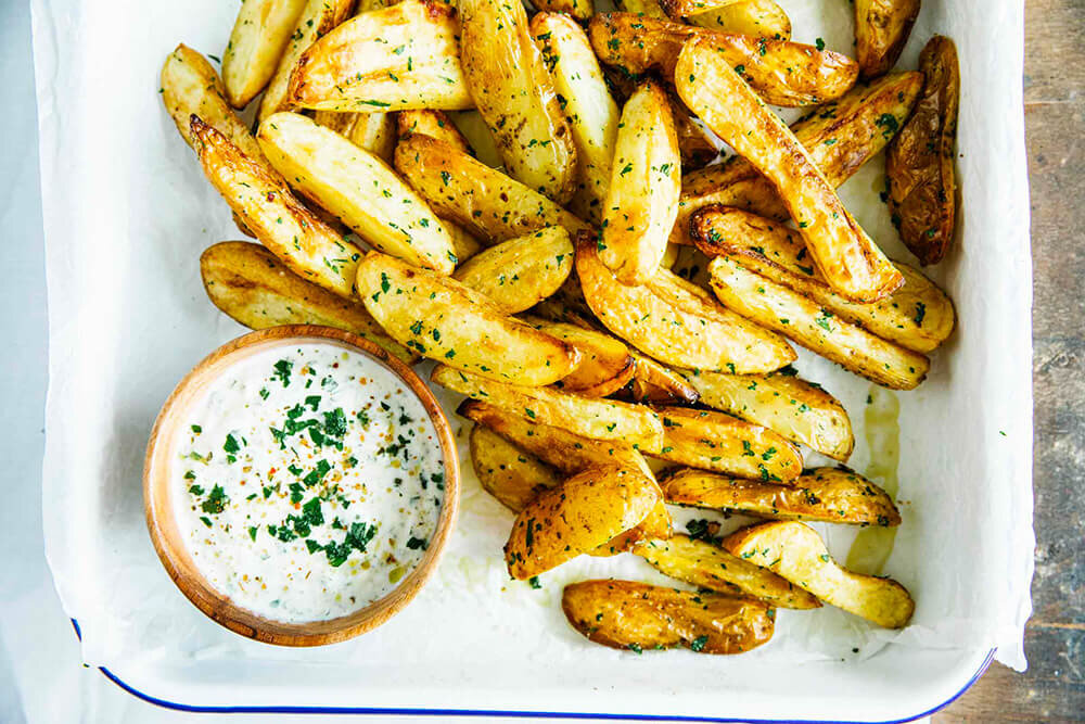 Еще один вариант приготовления картофельных долек - это создание авторского соуса для них. Для этого необходимо смешать масло, чеснок, паприку и травы, а затем добавить к ним нарезанный картофель. Картофельные дольки с соусом можно запечь в духовке до готовности.