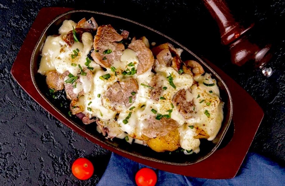 Сырные гармонии: картофель с мяском и грибами