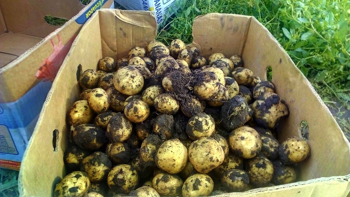 - Использование ящика или короба из дерева или пластика с вентиляцией. Картофель укладывается слоями, а между ними кладется слой газет или бумаги для предотвращения контакта картофеля с воздухом.