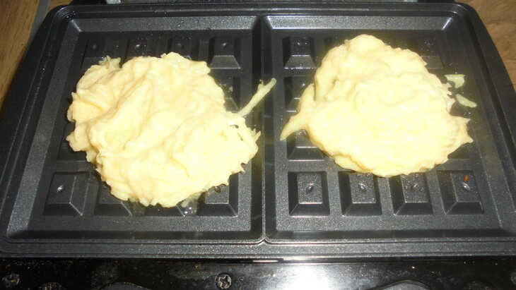 Также можно приготовить картофельные вафли на гриле. Для этого вам нужно будет выложить смесь на решетку гриля и обжаривать до готовности.
